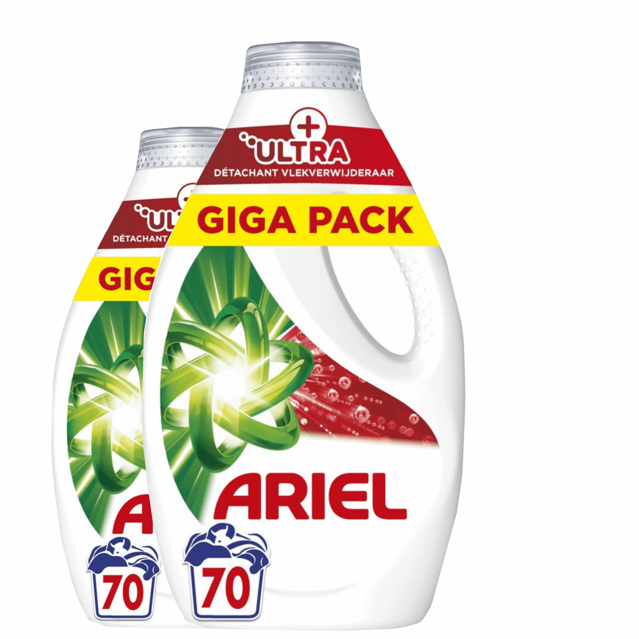 Ontdek Ariel +Ultra Vlekverwijderaar vloeibaar wasmiddel in deze voordeelverpakking met 2 flessen van 70 wasbeurten. De krachtige formule verwijdert zelfs 7 dagen oude ingedroogde vlekken en biedt uitstekende resultaten, zelfs bij koud water. Bespaar energie, bescherm je kleding en geniet van onberispelijke waskracht. EAN: 5061023100684