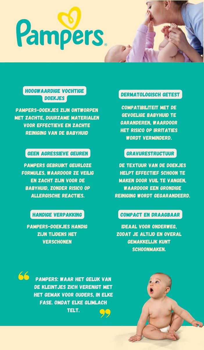 De doekjes zijn dermatologisch getest en goedgekeurd door de Skin Health Alliance. De sluiting voorkomt uitdroging, zodat elk doekje fris en vochtig blijft. Met Pampers Fresh Clean wordt verschonen niet alleen praktisch, maar ook een moment van comfort.