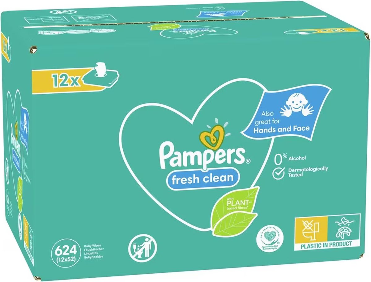 Pampers Fresh Clean Billendoekjes – 12 x 52 Doekjes