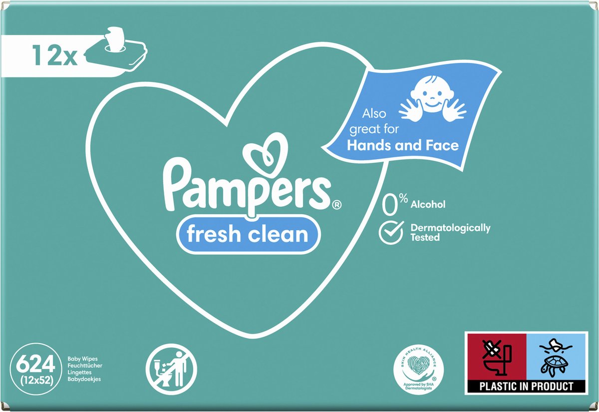 Met Pampers Fresh Clean doekjes zorg je voor een complete en milde reiniging van je baby, elke dag opnieuw. Dankzij hun dikkere, zachtere vezelstructuur reinigen ze nog beter dan voorheen, met een verfrissende geur die verschonen aangenamer maakt. De doekjes bevatten een pH-neutrale lotion die de huidbarrière beschermt tegen irritatie en helpen de pH van de huid in balans te houden, wat essentieel is na contact met urine of ontlasting.